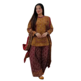 • Red 3-Piece Khaddar Suit – Bin Saeed | Winter Luxe Collection