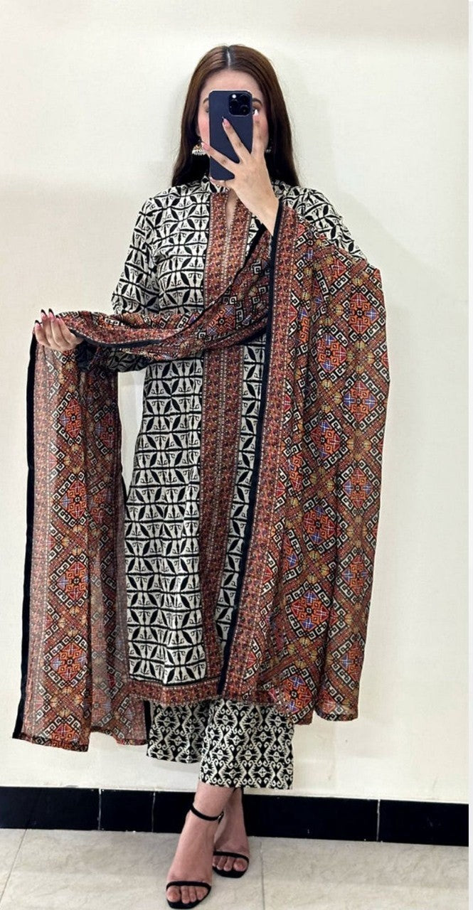• Shirt and dupatta feature beautifully detailed digital prints